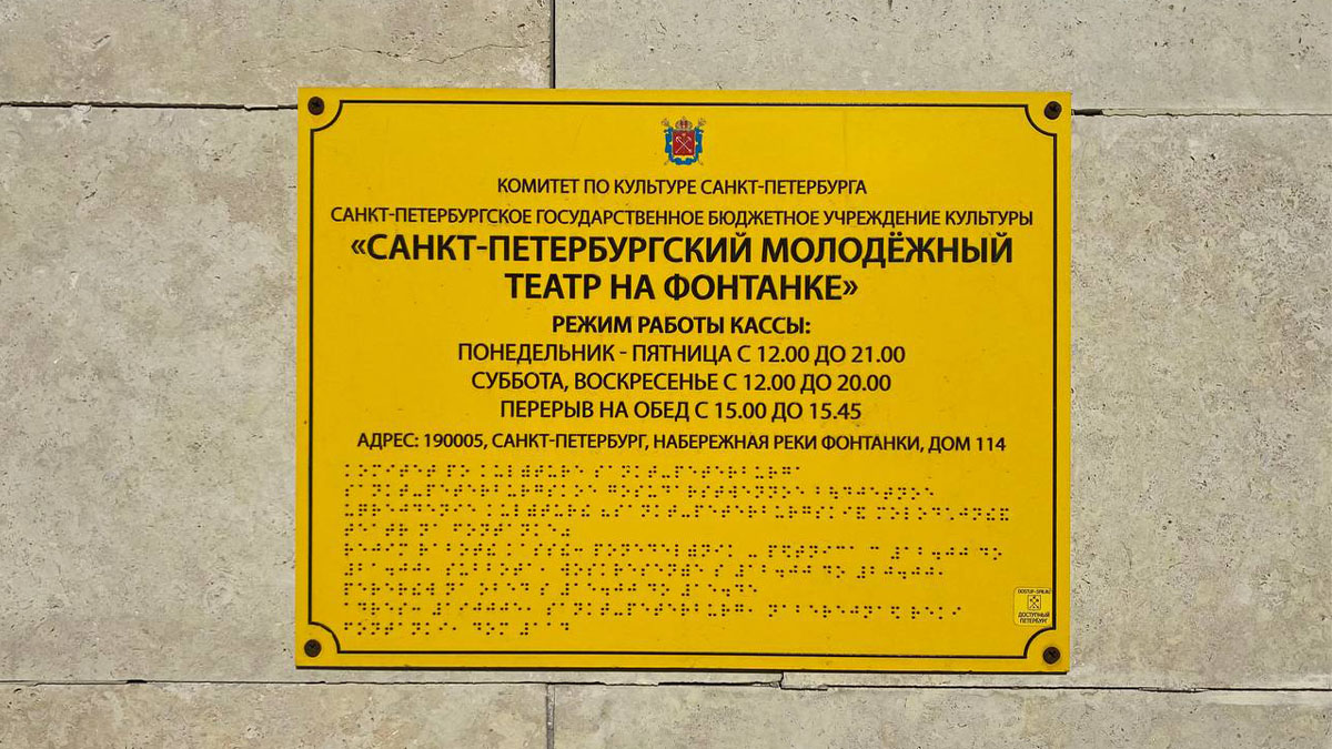 Ответсвенный за обеспечение доступности объекта: заместитель директора по эксплуатации репертуара и приему зрителей Габриелян Жанна Николаевна. Телефон +7 (812) 573-94-70